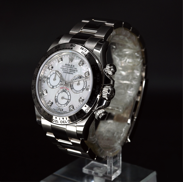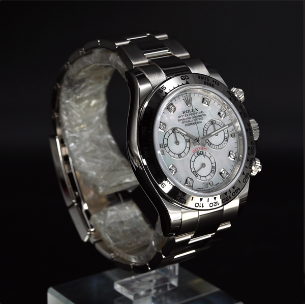 Rolex White Gold Cosmograph Daytona White Mother-Of-Pearl Diamond Dial 116509 md 40mm – White Diamond-Set Mother-of-Pearl Dial
