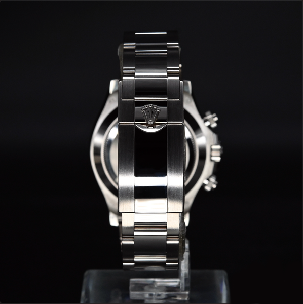 The watch is fitted with an 18K white gold Oyster bracelet composed of flat three-piece links and secured with an Oysterlock folding clasp featuring the 5mm Easylink comfort extension link. Water-resistant to 100 meters.